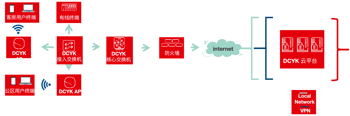 • 顺利获得DCYK酒店综合云管理平台,用户可以使用智能零接触配置让用户的网络在几分钟内正常运行。